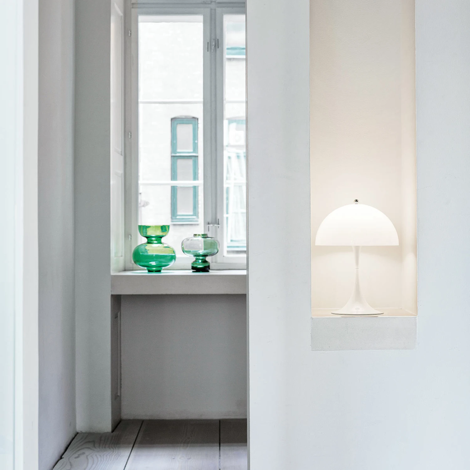 Das Design der Tischleuchte Panthella stammt von Verner Panton (1926-1998), einem skandinavischen Designer, der sich im Gegensatz zu vielen seiner Zeitgenossen nicht scheute, bei seinen Entwürfen mutig mit Materialien und Farben zu experimentieren. Sein Bestreben war es, durch seine Arbeit Menschen herauszufordern, ihre Fantasie einzusetzen.