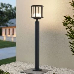Die Wegelampe Berenike ist die perfekte Ergänzung für den Außenbereich. Sie schafft es selbst bei Dunkelheit einen Weg intensiv auszuleuchten und ihn perfekt in Szene zu setzen. Ihr Leuchtenkörper besteht aus Aluminium, welches in Dunkelgrau gehalten ist und ihr einen robusten Charakter verleiht. Der Leuchtenschirm, der an der Spitze ihres Standbeines sitzt, verfügt über eine zylindrische Form und kann mit entsprechenden Leuchtmitteln bestückt werden. Möchte man einen stimmigen Gesamteindruck innerhalb des Ambientes im Außenbereich schaffen, so lässt sich die Wegeleuchte Berenike einfach mit weiteren Lampen ihrer Serie kombinieren.