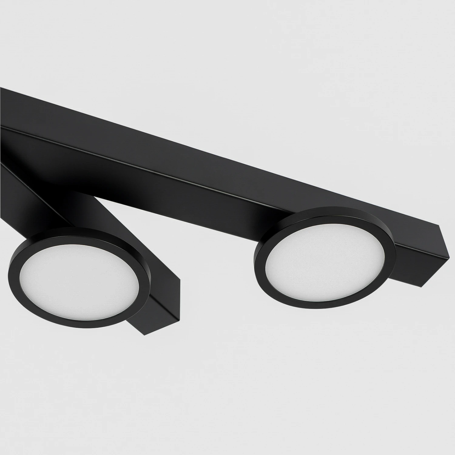 Gekreuzte LED-Deckenleuchte Kellino mit schwarzer Oberfläche, vierflammig, exklusives DesignDie Deckenlampe Kellino verleiht Ihrem Zuhause das gewisse Etwas. Die warmweiße Farbtemperatur des Lichts taucht Ihren Wohnbereich in eine tolle Atmosphäre. Mit dieser Deckenlampe treffen Sie eine Wahl für bewährte Lucande-Markenqualität. Die Leuchte aus Eisen vervollständigt Ihr persönliches Einrichtungskonzept dank des modernen Designs, welches von Ingo Thiele stammt. Das Modell Kellino findet in verschiedenen Anwendungsbereichen in Ihrem Zuhause einen Platz. Es bietet Ihnen mit vier bequem austauschbaren Leuchtmitteln perfektes Licht. Die schwarze Leuchte kommt außerdem GU10-Fassungen daher. Mit dieser Lampe können Sie das Gesamtbild Ihrer vier Wände weiter verschönern.