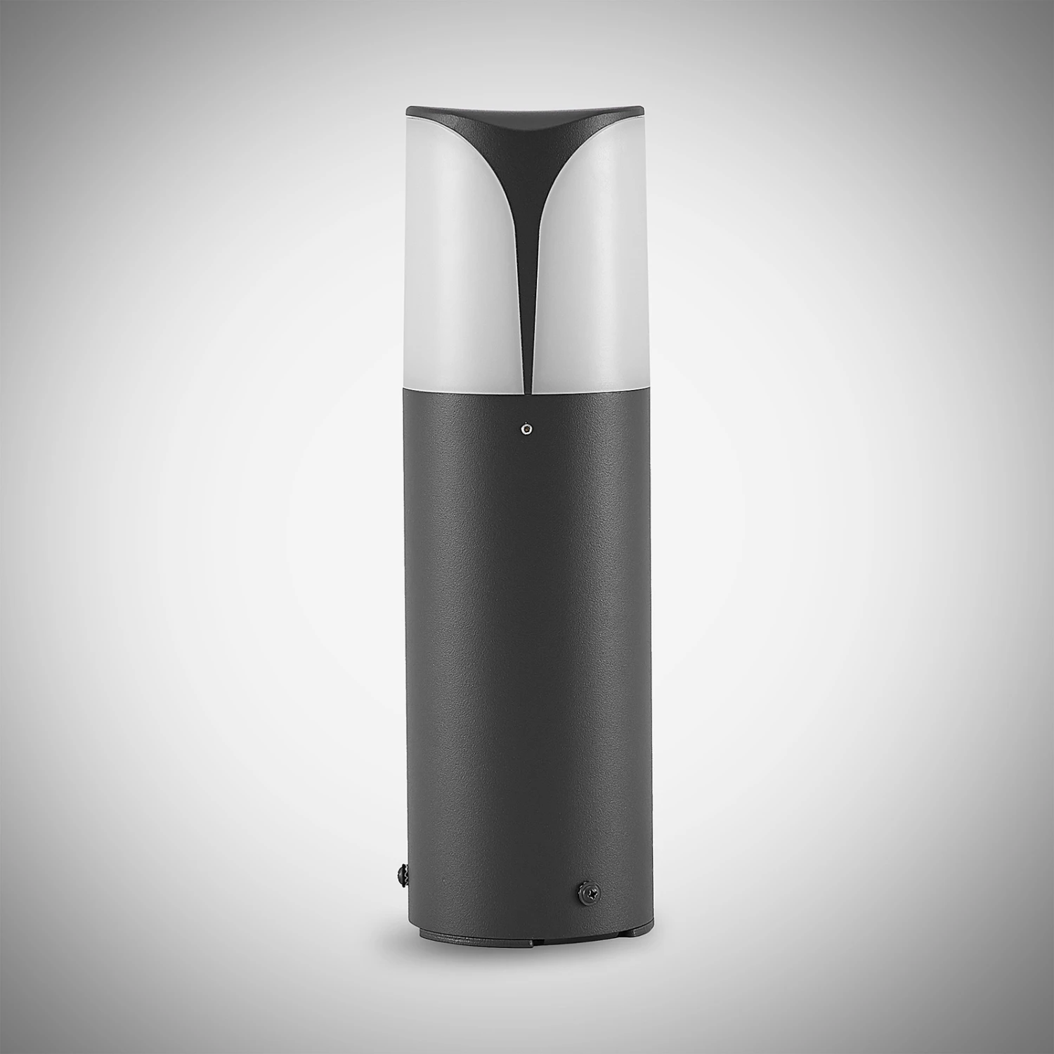 Dunkelgraues Aluminium wird hier geschickt komibiniert mit einem opalweißen Diffusor, sodass beide im Gesamtbild die elegante Form der modernen Sockelleuchte Paikea ergeben. Einsetzbar im gesamten Außenbereich rund ums Haus, erleuchtet Paikea Treppenaufgänge, kleine Mauern, Bereiche an der Terrasse oder auch am Hauseingang.