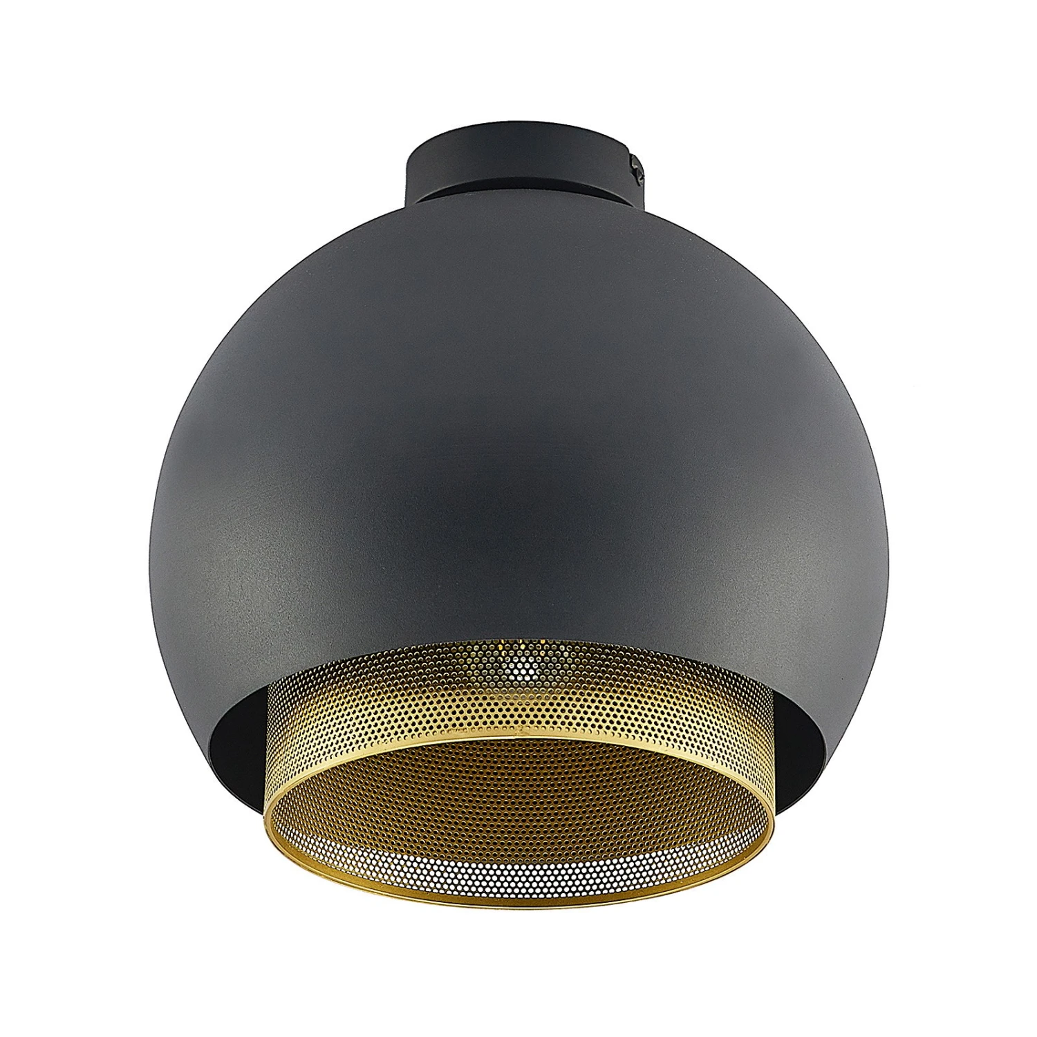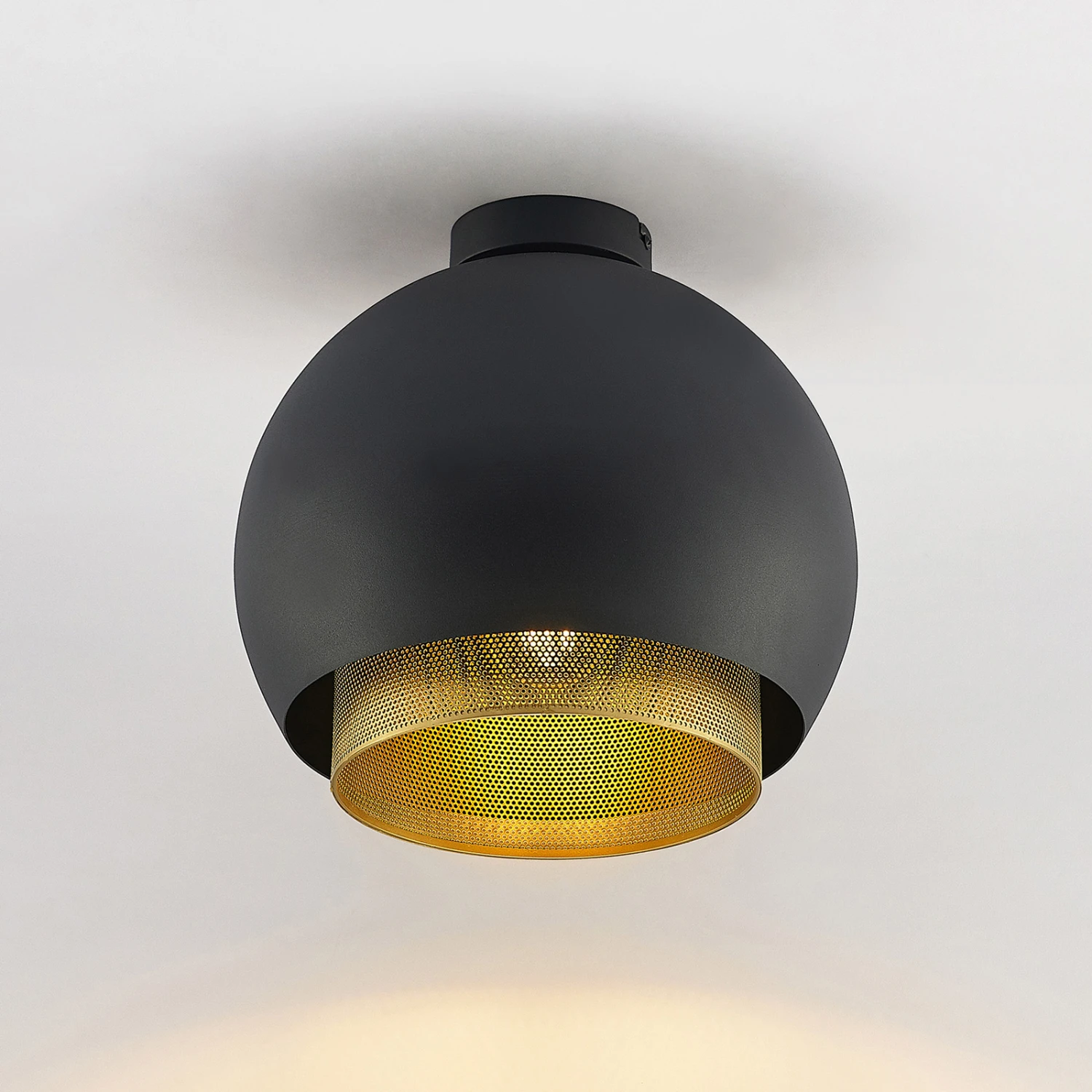 Üppige Deckenleuchte Sivanel mit einem schwarzen und goldenen Leuchtenschirm