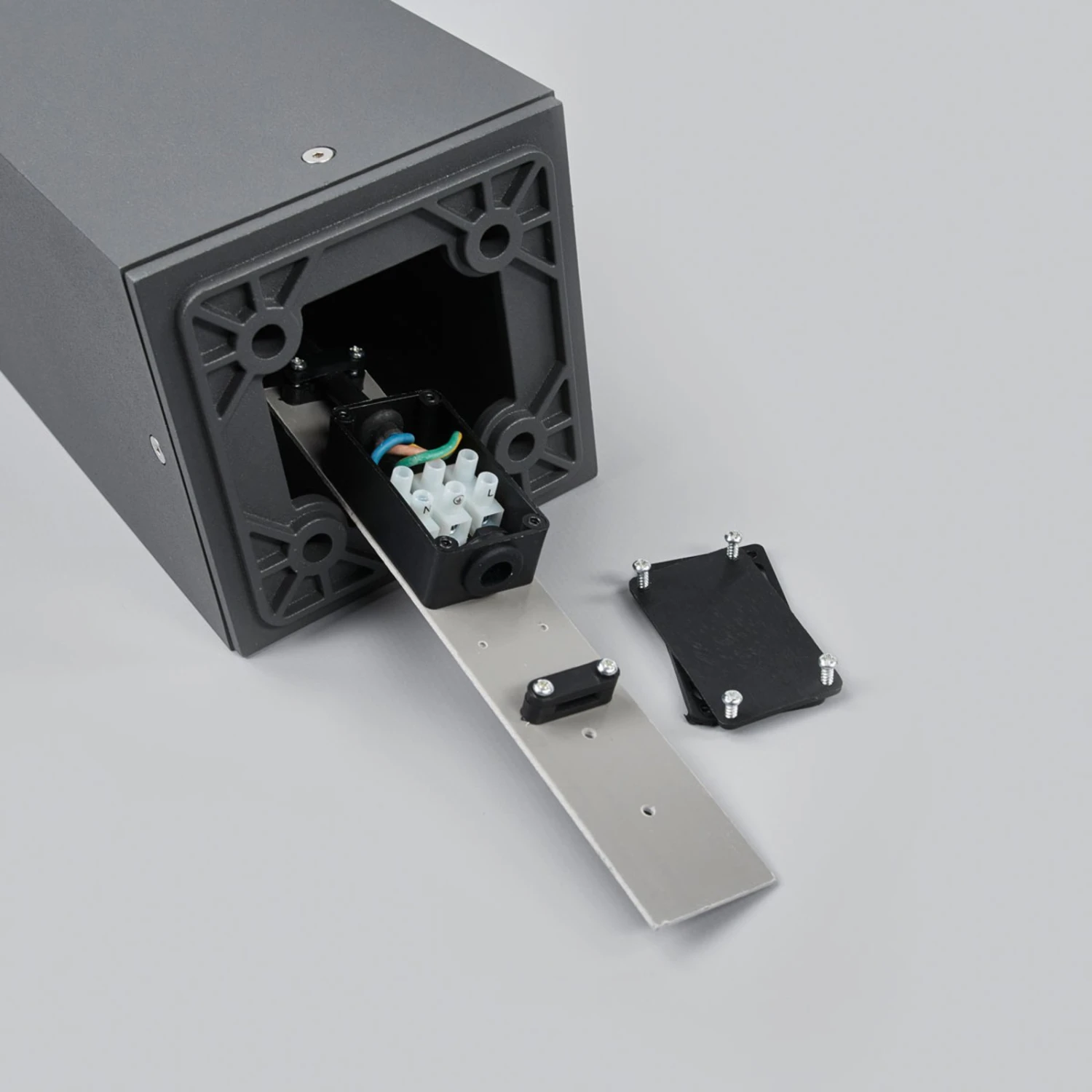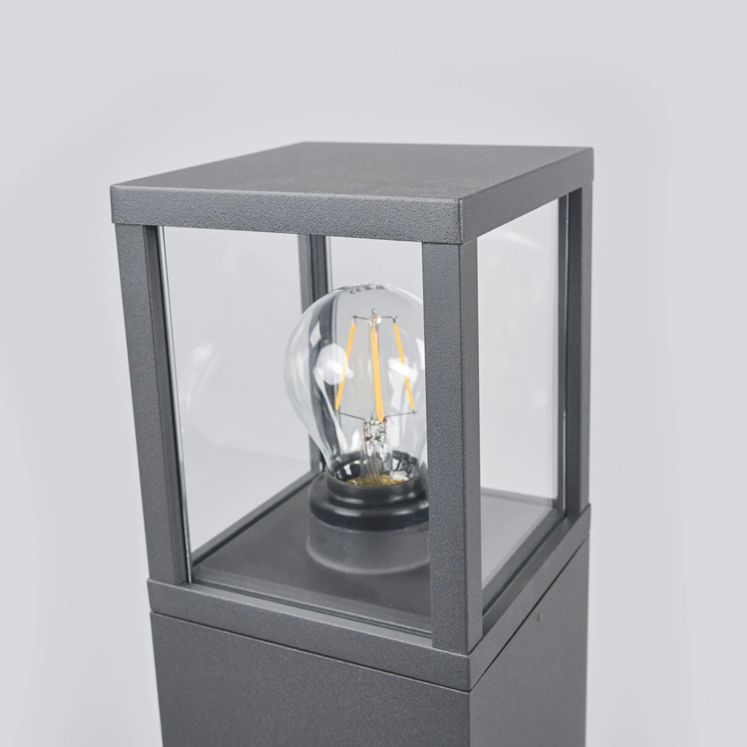 Eckige Pollerleuchte Klemens mit Glaseinsatz und dunkelgrauer Oberfläche