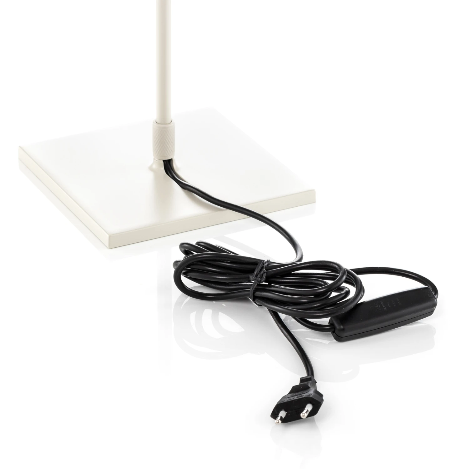 Die zeitlose Tischleuchte Costanza begeistert bereits seit 1986. Der Designer und Mitbegründer der Leuchtenfirma Luceplan, Paolo Rizzatto, zeichnet für diesen Klassiker verantwortlich. Der konisch geformte Lampenschirm, der so typisch für die Costanza ist, besteht aus einem hochwertigen Polyurethan und wird seitlich mit Druckknöpfen fixiert. Er sitzt ganz locker auf zwei Halterungen auf dem weiß lackierten Gestell der Leuchte und pendelt sich so immer wieder selbst ins Lot. Geschaltet wird die Tischleuchte mit einem schlichten Stab, der aber auch ganz raffiniert die Dimmung steuern kann. Die Besonderheit der Tischleuchte ist jedoch die Höhenverstellbarkeit, bei der das Gestell der Lampe mithilfe einer Teleskop-Technik von 76 bis auf 110 cm geändert werden kann.