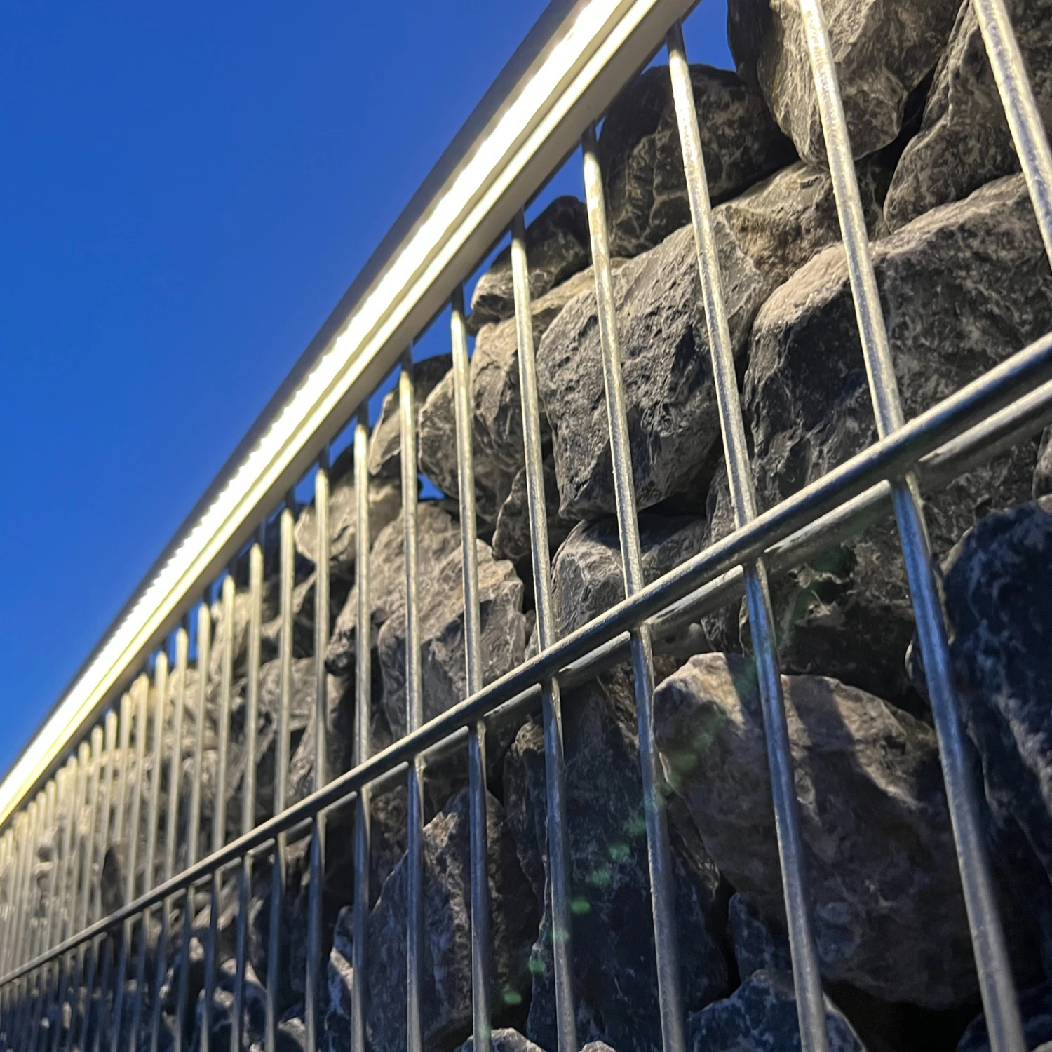 Das praktische Starter-Set von LyghtUp® besteht aus drei LED-Leuchtleisten, Verbindungskabeln und einem Netzteil (100 W). Das Starter-Set kann durch weitere einzelne Leuchten auf bis zu 12,5 m Länge erweitert werden. Die Leuchtleisten werden einfach auf den Zaun (Doppelstabmatten) aufgesteckt. Per Steckverbindung können mehrere Leuchtleisten miteinander verbunden werden. Schaltet man noch den als Zubehör erhältlichen WiFi-Dimmer (nicht inklusive) dazwischen, sind die Leuchtleisten auch per Zigbee dimm- und steuerbar.