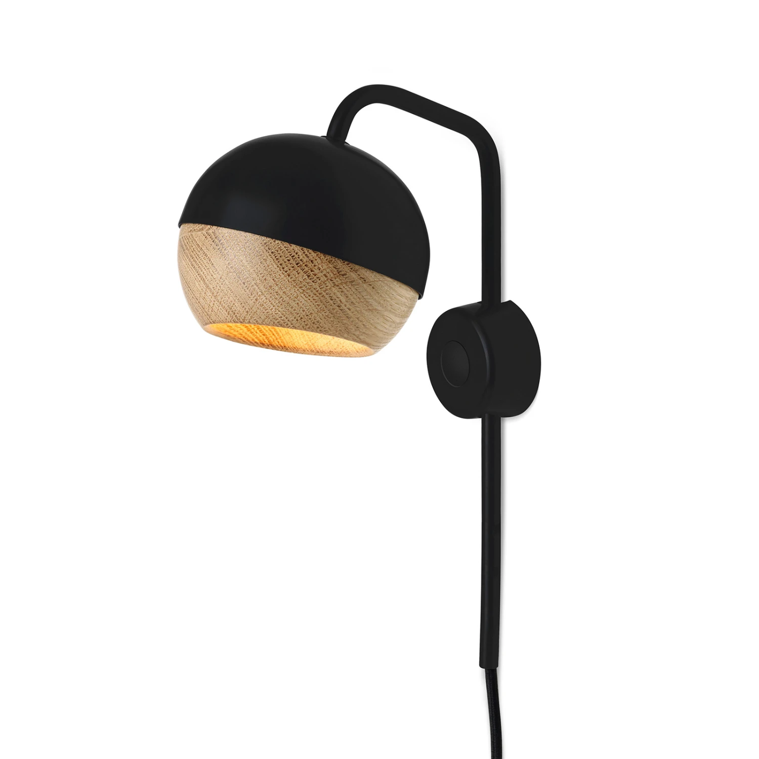 Diese Wandleuchte unterstreicht mit ihrem skandinavisch-minimalistischen Design wirkungsvoll einen modernen, natürlich inspirierten Einrichtungsstil. Ray ist mit einem Kugelschirm ausgestattet, der sich aus einer lackierten Stahlhaube und einer im Innern magnetisch befestigten Sphäre aus Eichenholz zusammensetzt. Mit einem drehen des Holzelements lässt sich die runde Lichtöffnung auf den gewünschten Bereich richten. Der Ein-/Aus-Schalter befindet sich an der Montageschiene, zur Stromversorgung kann die Wandleuchte dank ihres Steckerkabels direkt an eine Steckdose angeschlossen werden.