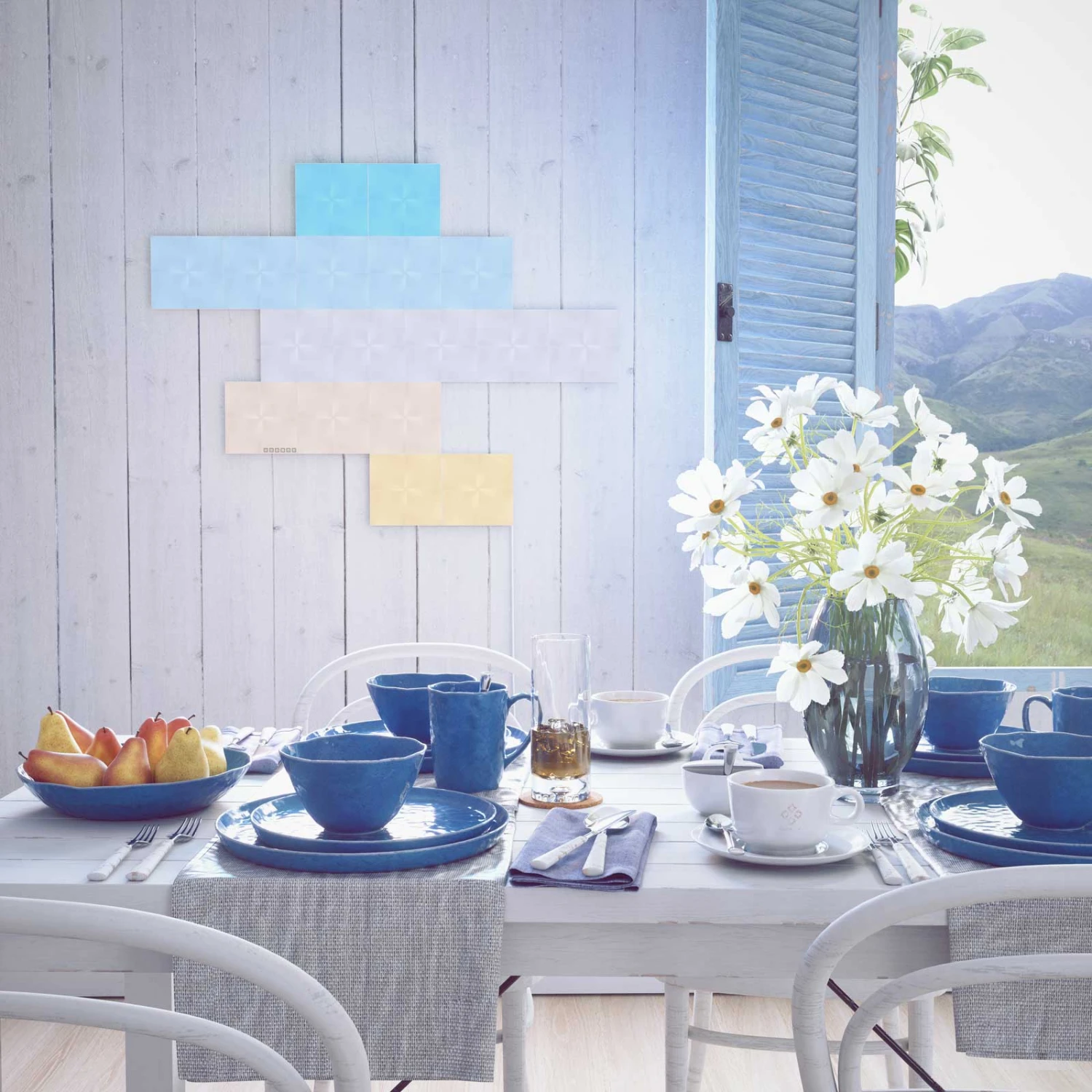 Mit 17 in zahllosen Farben und Mustern leuchtenden Panels, die in beliebiger Anordnung an der Wand platziert werden können, bietet Nanoleaf Canvas einen schier unendlichen Gestaltungsspielraum. Mit den beiliegenden Steckverbindungen lassen sich Reihen, Kreise, Symbole und Figuren je nach persönlicher Vorliebe bilden.