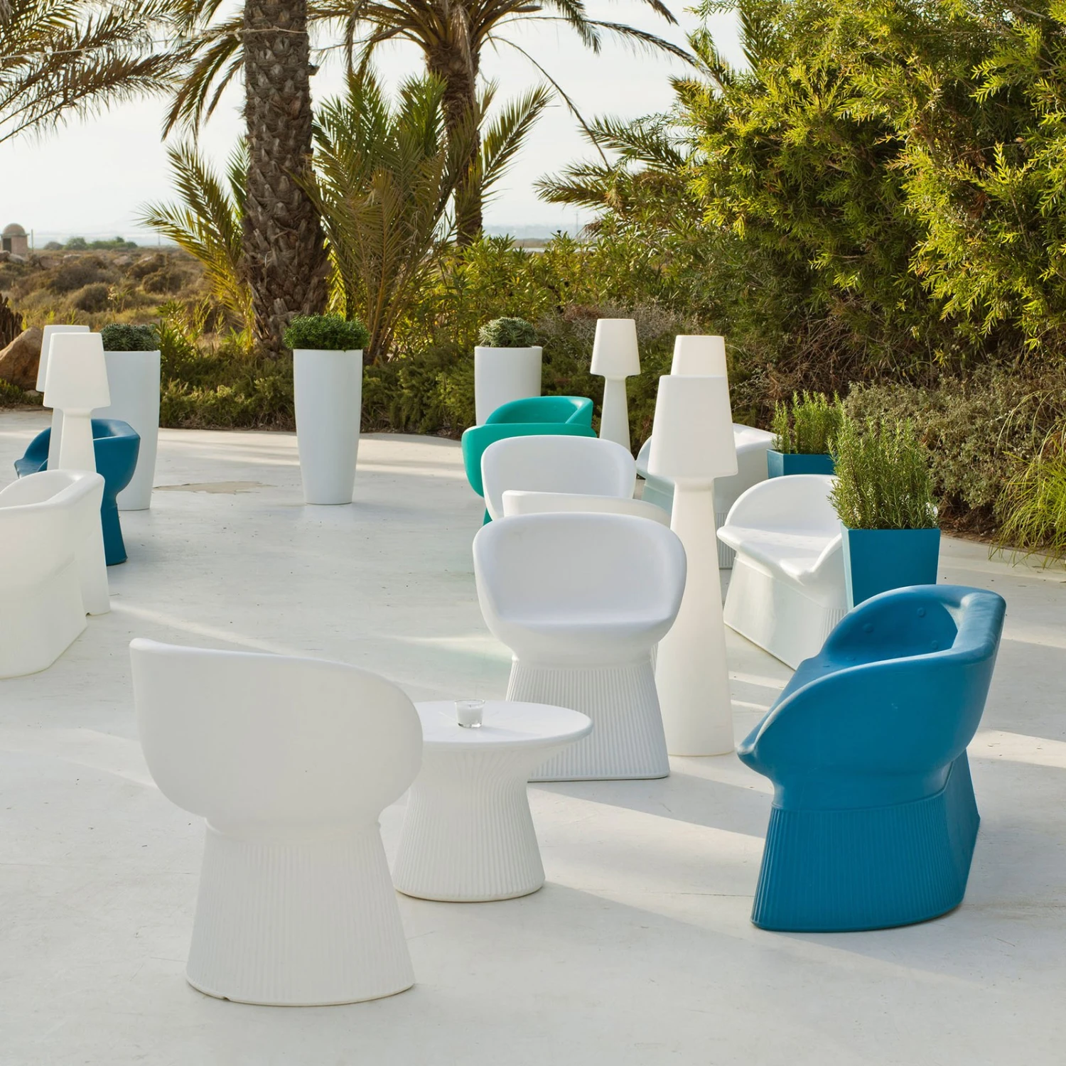 Mallorca ist ein bequemer Sessel für den Innen- oder Außenbereich, der Sitzgelegenheit und leuchtende Dekoration gleichzeitig ist und – kombiniert mit anderen Produkten der Serie Capri zu einem kompletten Chilout-Ensemble zusammengestellt werden kann. Gefertigt aus Polyethylen, einem Kunststoff, der nicht nur uv-beständig sondern auch widerstandsfähig und robust ist und mit Schutzart IP65 vor äußeren Einflüssen geschützt, lässt er sich nicht nur im Innenraum, sondern auch im gesamten Außenbereich aufstellen.