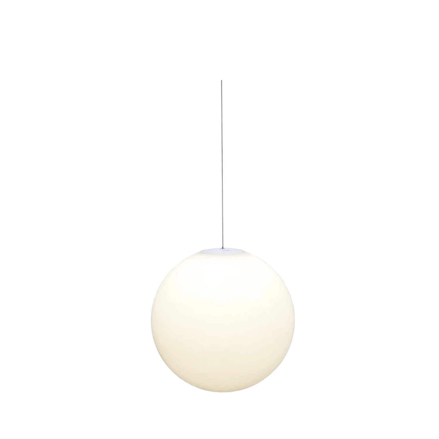 Die kugelförmige LED-Hängeleuchte Pianeta ist zeitlos gestaltet und fügt sich daher in zahlreiche Umgebungen problemlos ein. Sie kann beispielsweise auf dem Balkon, auf der Terrasse oder auch im Garten verwendet werden. Mit der beiliegenden Fernbedienung lässt sich die Pendellampe dimmen, außerdem kann die Lichtfarbe von Warmweiß bis Tageslicht variiert werden. So lassen sich die Lichtverhältnisse ideal den individuellen Bedürfnissen anpassen. Pianeta kann ganz bequem über das mitgelieferte USB-Kabel aufgeladen werden, sodass während des Betriebs kein Stromkabel benötigt wird und die Leuchte flexibel platziert werden kann.