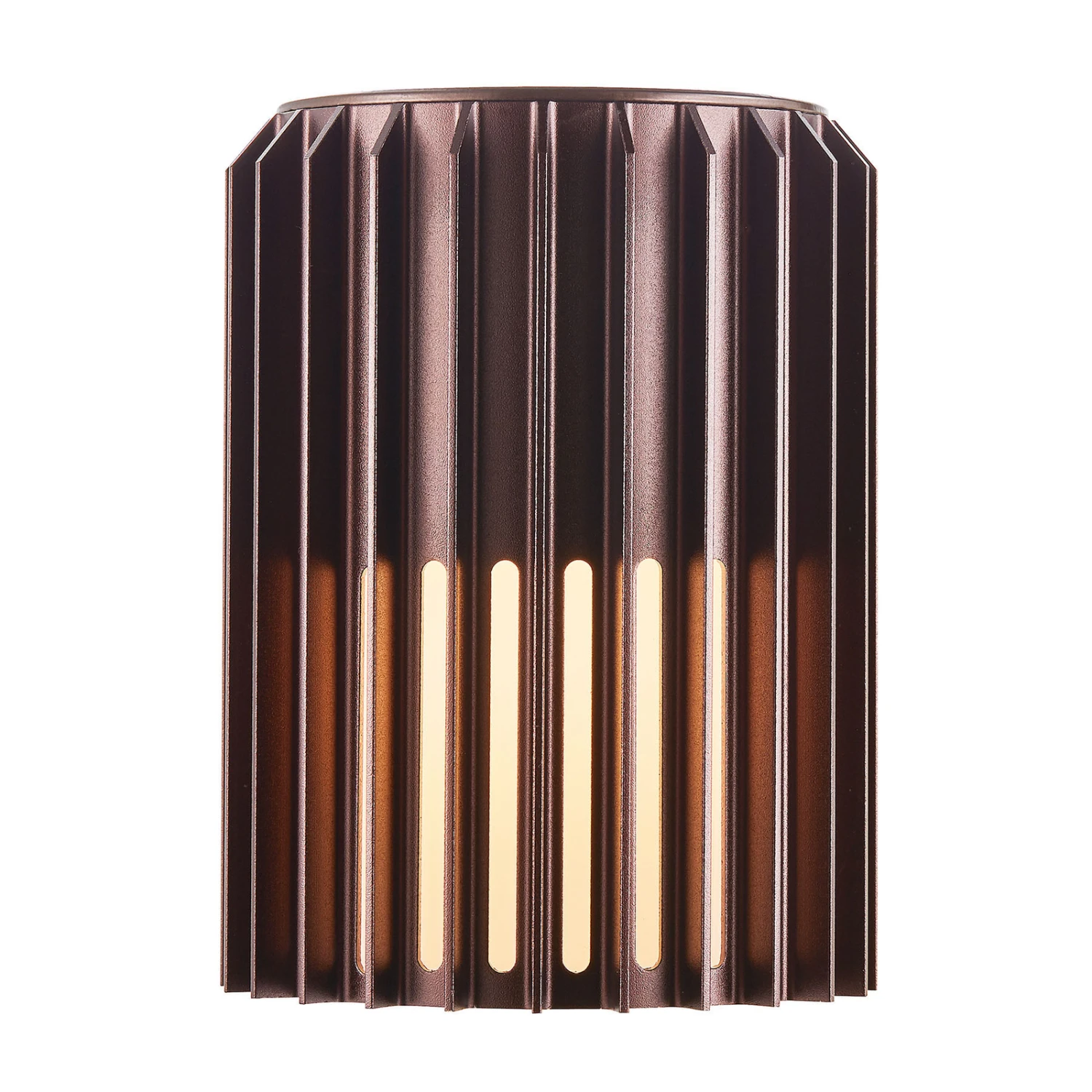 Die kompakte, zylindrische Form der Außenwandleuchte Aludra besteht aus gehärtetem, eloxiertem Aluminium, was die Langlebigkeit des Produktes im Vergleich zu bemaltem Metall deutlich erhöht. Ein Schutz-Diffusor aus Plastik befindet sich in dem Aluminiumgehäuse. Das Licht fällt durch die dünnen Stäbe und schafft so eine Beleuchtung vertikal, wie auch nach unten. Das skandinavische Design, von Jacob Jensen konzipiert, wirkt sehr modern und wird von dem dänischen Hersteller Nordlux produziert.