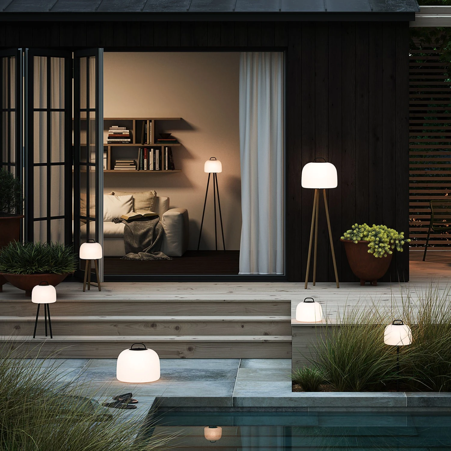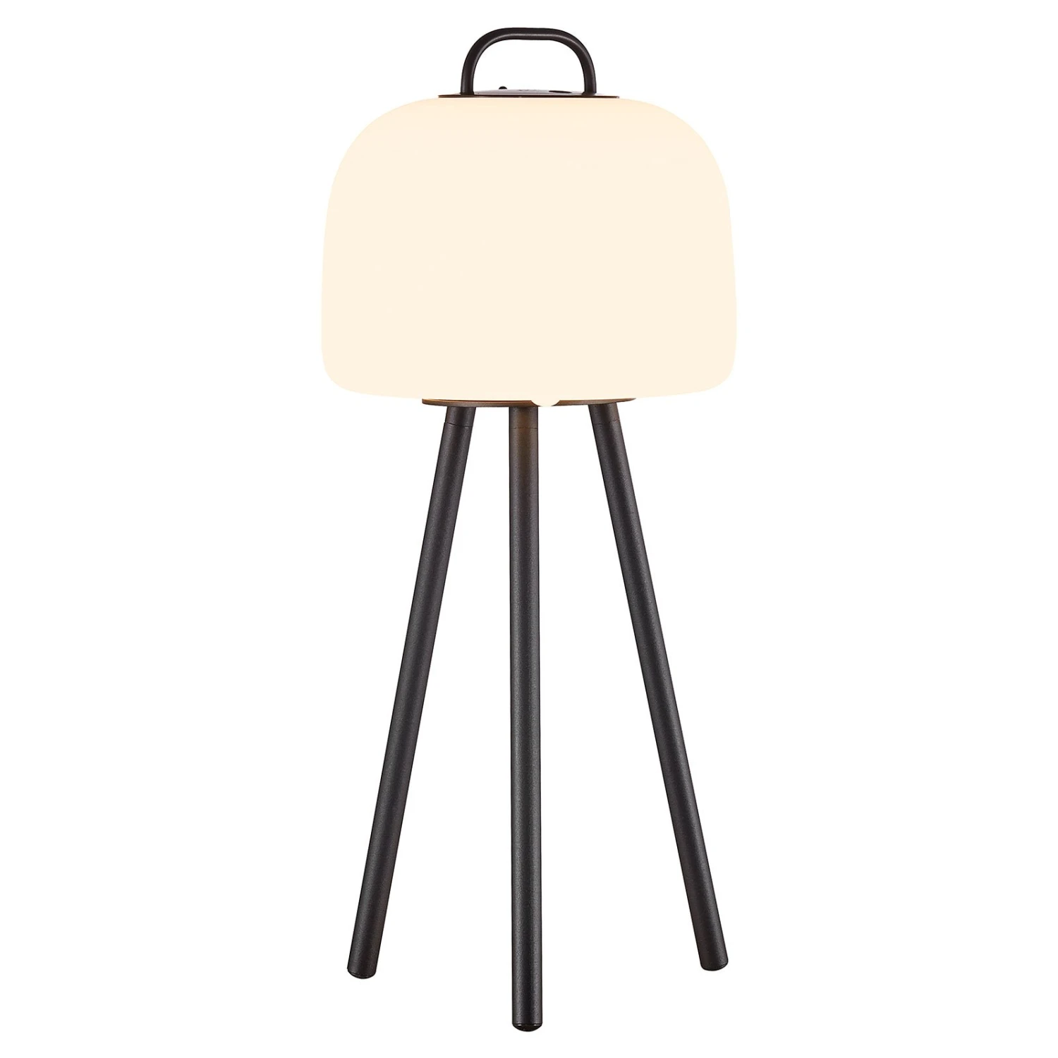 Ob in Innenräumen oder auf der Terrasse oder dem Balkon und auch im Außenbereich von Restaurants oder ähnlichen gewerblichen Bereichen – mit der LED-Tischleuchte Kettle entsteht Gemütlichkeit sowie eine effektvolle Beleuchtung. Die Stehleuchte besteht aus einem dreibeinigen Gestell, auf dem ein Schirm aus weißem Polyethylen sitzt, der oben mit einem praktischen Tragegriff ausgestattet ist, so dass die Tischleuchte portabel ist. Dies ist sie jedoch hauptsächlich aufgrund der Ausstattung mit einem Akku, der für bis zu 15 Stunden Beleuchtung ausreicht und erst dann wieder mittels USB-Kabel aufgeladen werden muss.