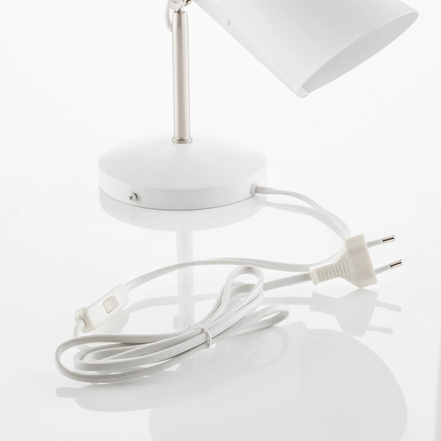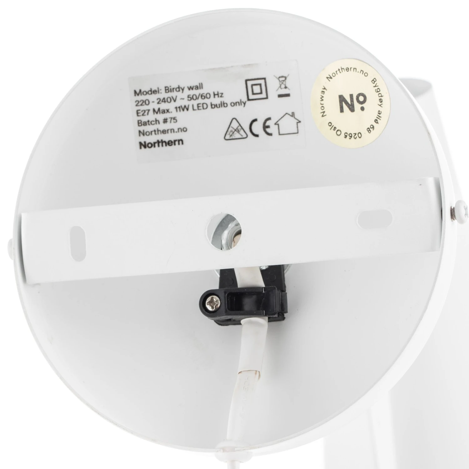 Die Wandleuchte Birdy ist im Retro-Stil gehalten. Sie hat einen stilvoll geformten, weißen Leuchtenschirm, welcher an einem silbernen Arm befestigt ist. Im Übergang befindet sich ein Gelenk, dank dem die Wandleuchte ganz leicht eingestellt werden kann. Die Wandhalterung ist wie der Schirm in Weiß gehalten und hat einen Durchmesser von 12,5 cm. Die Wandleuchte Birdy hat eine 200 cm lange Zuleitung (weiß) mit Stecker und Kippschalter.