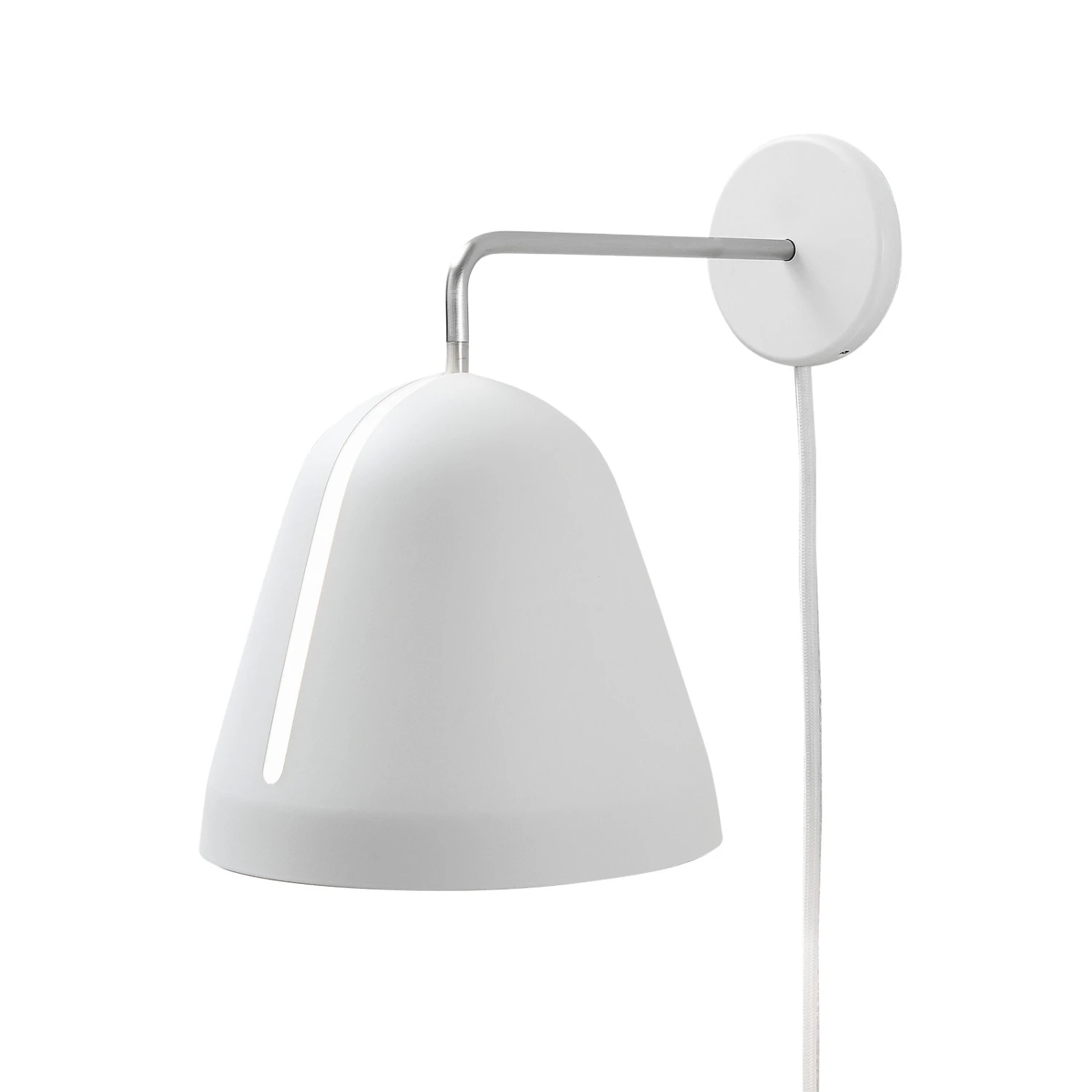 Die kleine Wandleuchte Tilt Wall ist mit einem farblich passenden Kabel mit Stecker ausgestattet, sodass die Leuchte überall problemlos montiert werden kann. Das Kabel ist an der runden Wandhaltertung befestigt, die zudem einen kleinen Schalter für ein bequemes und komfortables ein- und ausschalten besitzt. Das Besondere an der kleinen Leuchte ist jedoch ihr Lampenschirm. Dieser ist aus lackiertem Aluminium gefertigt und besitzt einen länglichen Schlitz auf der Vorderseite. Mit Hilfe dieser Öffnung kann der Schirm wie eine Schale um das Leuchtmittel herum gedreht und geschwenkt werden, was dazu führt, dass das Licht individuell ausgerichtet werden kann. Ob es direkt nach unten oder auch in einem bestimmten Winkel seitlich auf ein Objekt oder in den Raum hinein leuchten soll, mit der prämierten Funktionsweise der Leuchte Tilt überhaupt kein Problem. Das Verstellen des Schirms funktioniert dabei mühelos und erfolgt intuitiv.