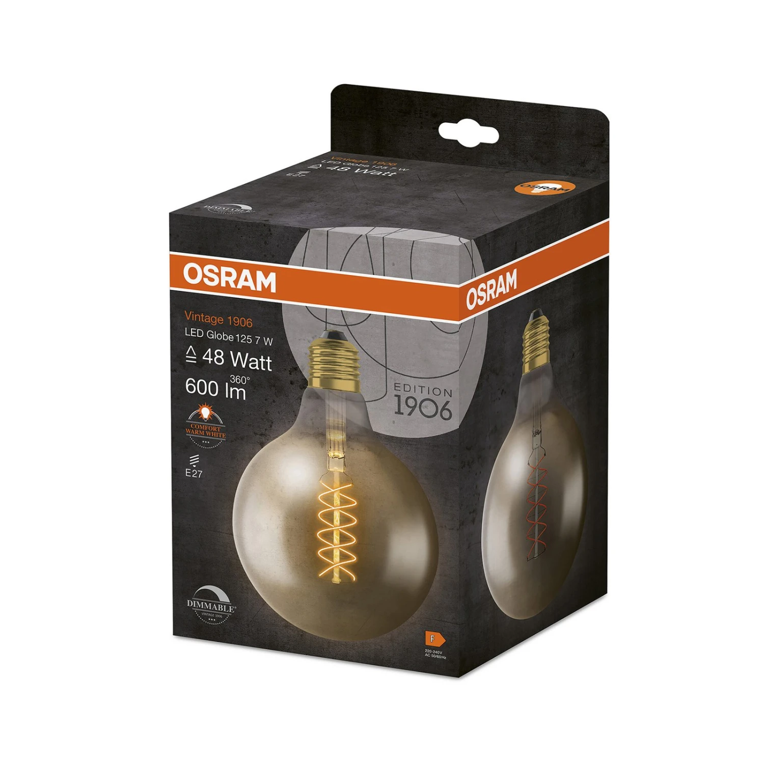 Diese dimmbare LED-Globelampe aus der Vintage 1906 Edition von OSRAM eignet sich ideal für dekorative Anwendungen. Das Leuchtmittel ist mit einem klaren, golden getönten Glaskolben und warmweiß strahlenden LED-Filamenten ausgestattet.