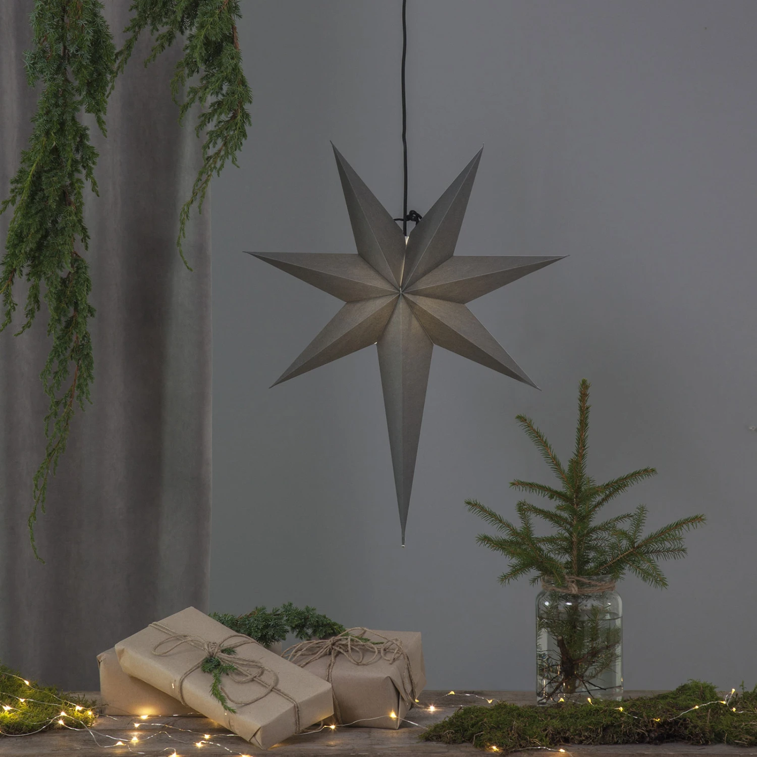 Auffällig geformter Papierstern Ozen in Grau