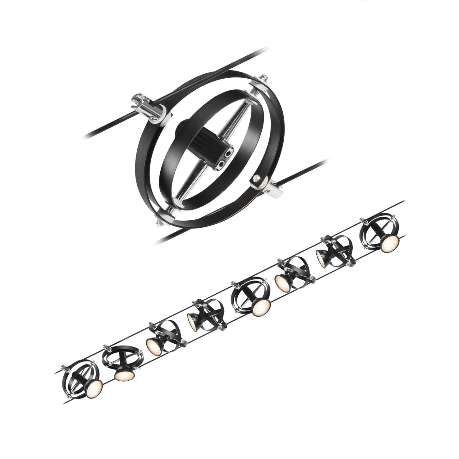 Seilsystem Cardan – achtflammiges Komplettset aus Seil, Trafo und Leuchten