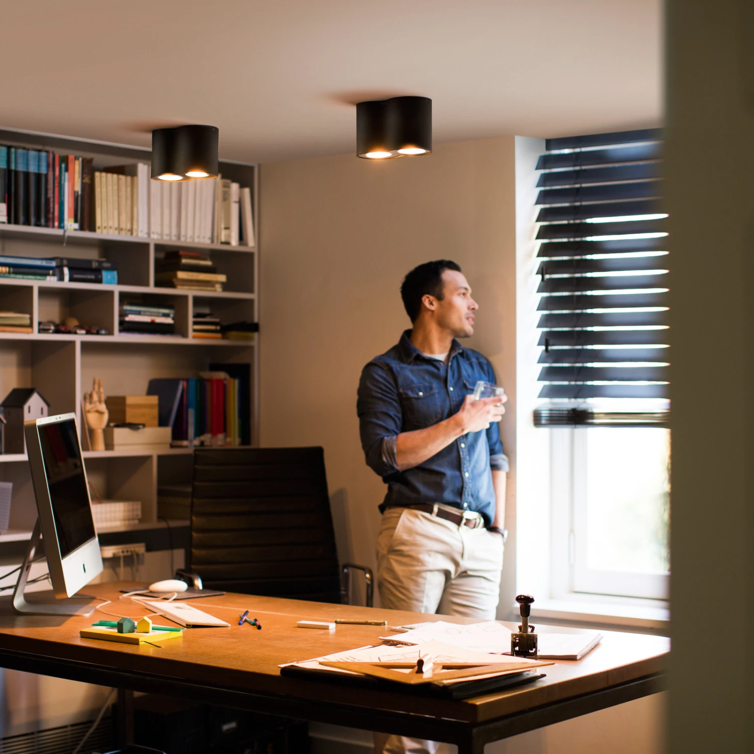 Mit Hilfe des mitgelieferten Dimmschalters, der auch ohne die Anbindung in ein Hue-System mit der Leuchte kommuniziert, kann der Deckenspot ein- und ausgeschaltet, gedimmt oder in der Farbtemperatur geändert werden. Hierzu sind vier unterschiedliche Lichtrezepte vorinstalliert, die ein Ambiente zum Energie tanken, Konzentrieren, Lesen oder Entspannen entstehen lassen. Um eine bestmögliche Ausleuchtung garantieren zu können, lassen sich die beiden Leuchtenköpfe variabel ausrichten.