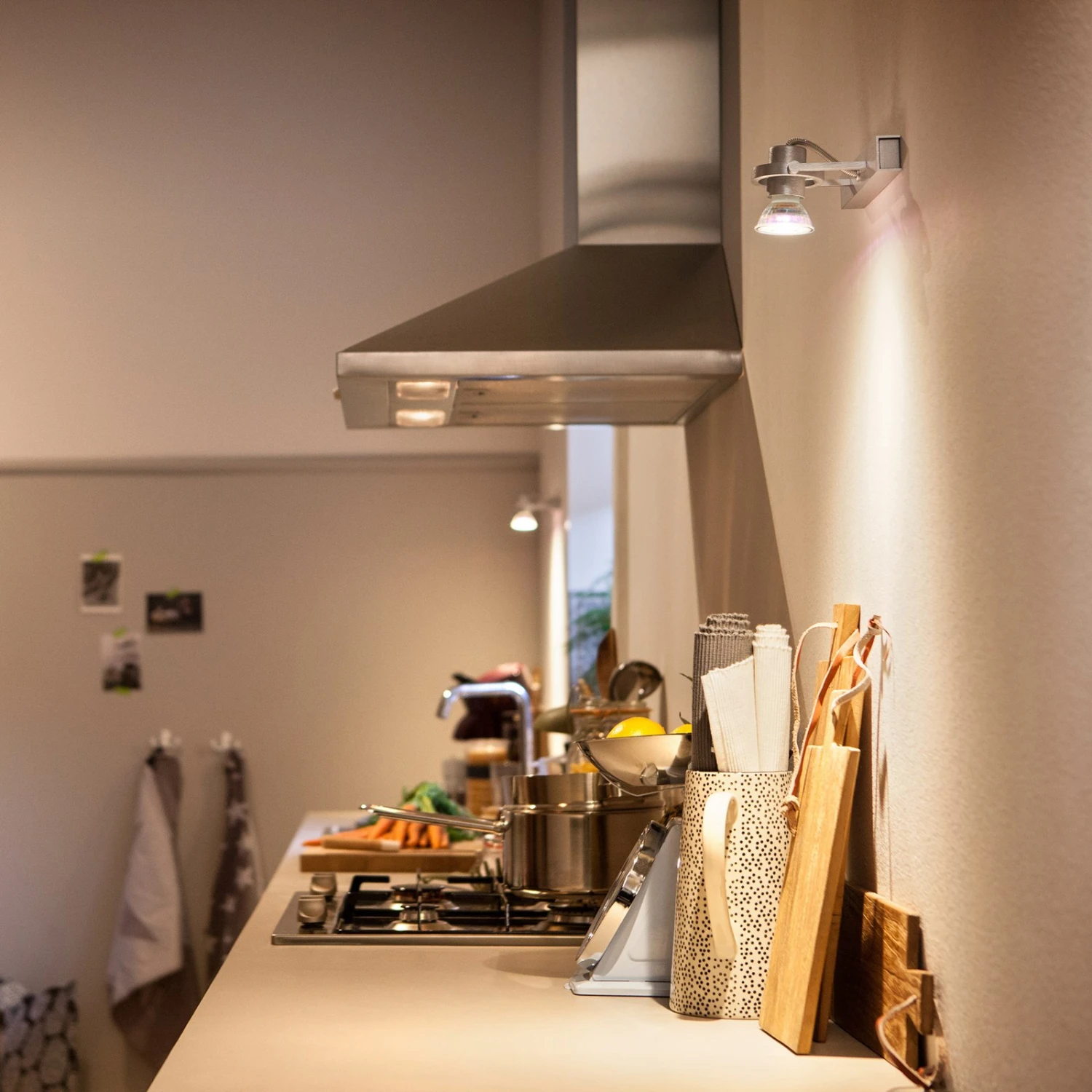 Dieses LED-Leuchtmittel PAR16 mit GU10-Sockel ersetzt herkömmliche Halogenlampen mit 50W. Der klare Glasreflektor strahlt das universalweiße Licht in einem Winkel von 36° aus.