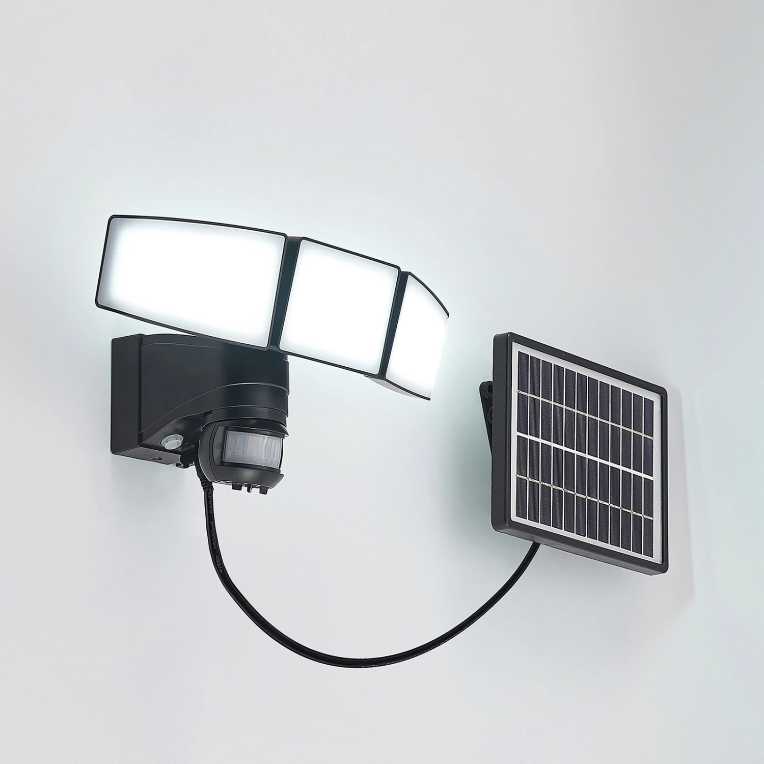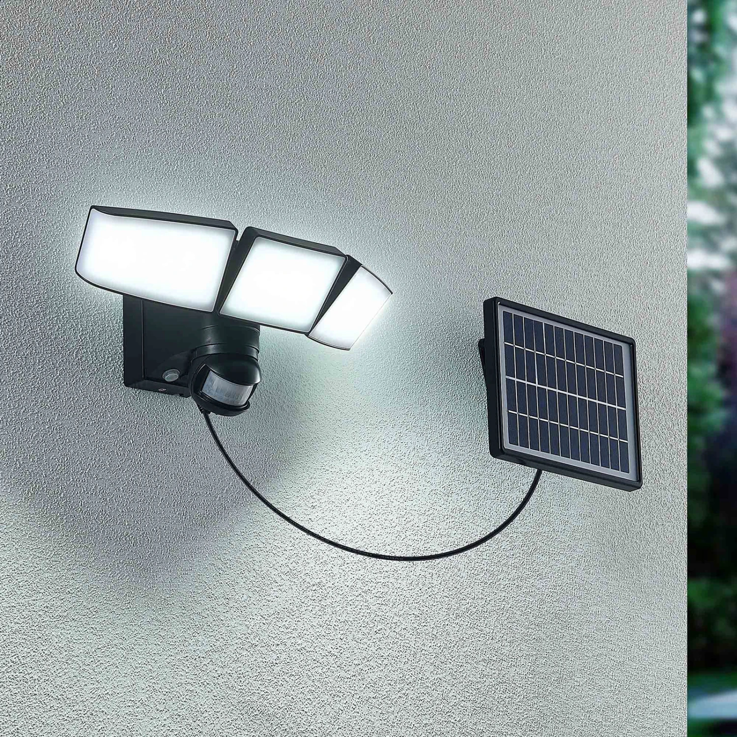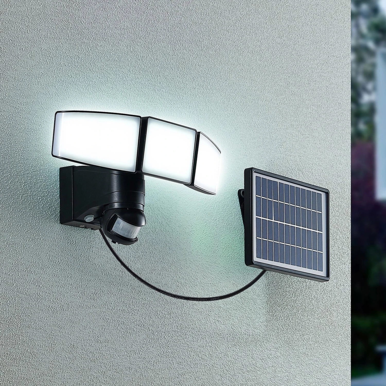 Dreiflammiger LED-Solar-Wandstrahler Kalvito mit einem Bewegungsmelder