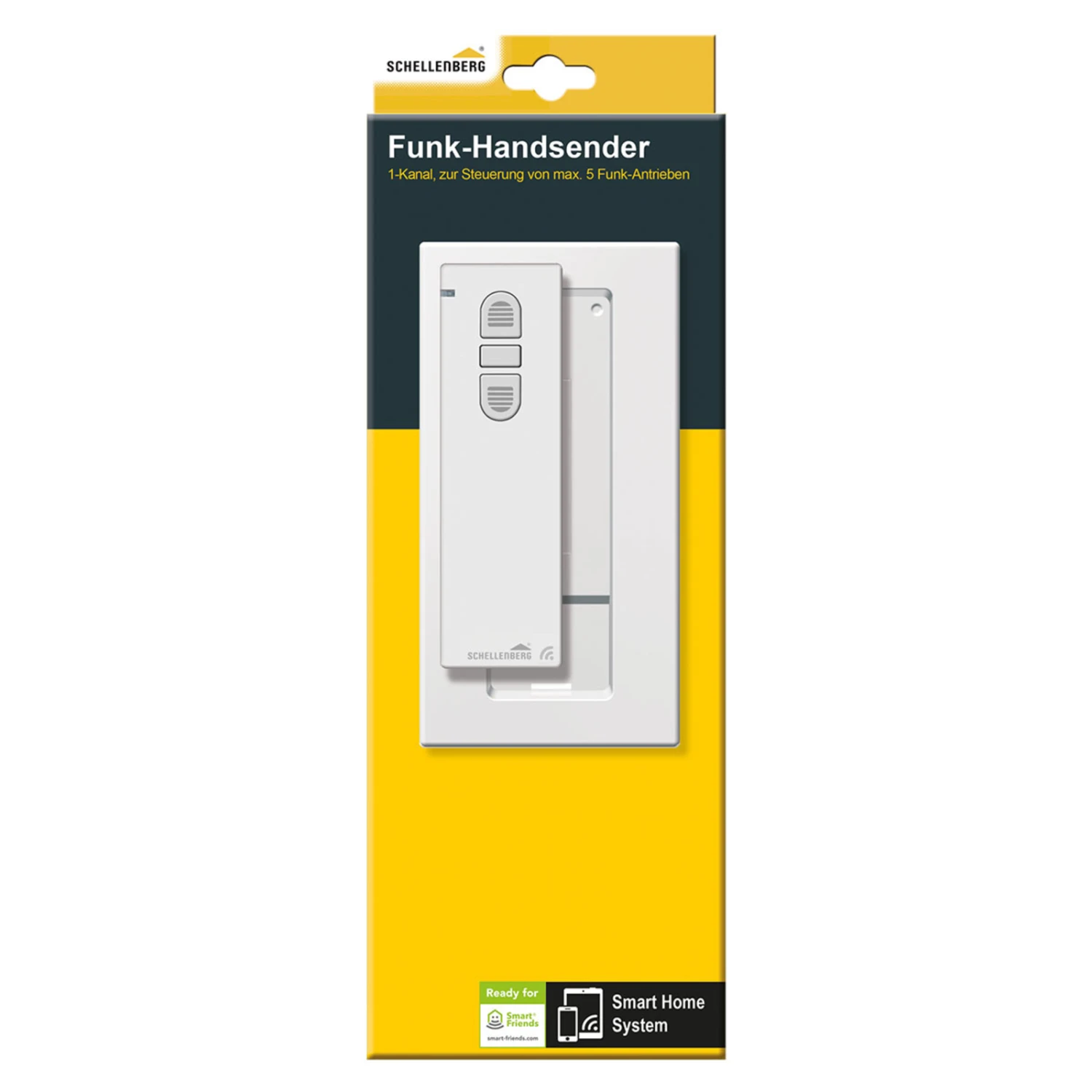 Der Funk-Handsender kann jedoch noch mehr: Mühelos lässt er sich in ein bestehendes Smart-Friends-System oder Schellenberg Smart-Home-System einbinden. So kann der Handsender neben der App-Steuerung als zusätzliches Bedienelement genutzt werden.