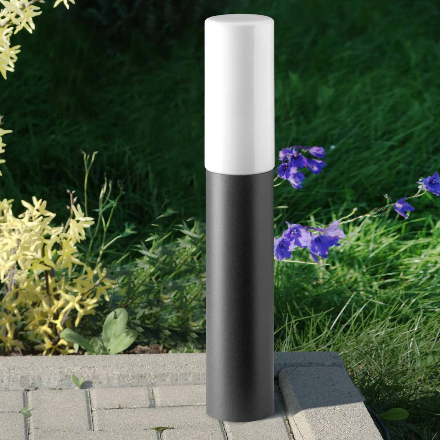 Praktische Sockelleuchte Gray kombiniert Anthrazitfarbe und weißes Opalglas