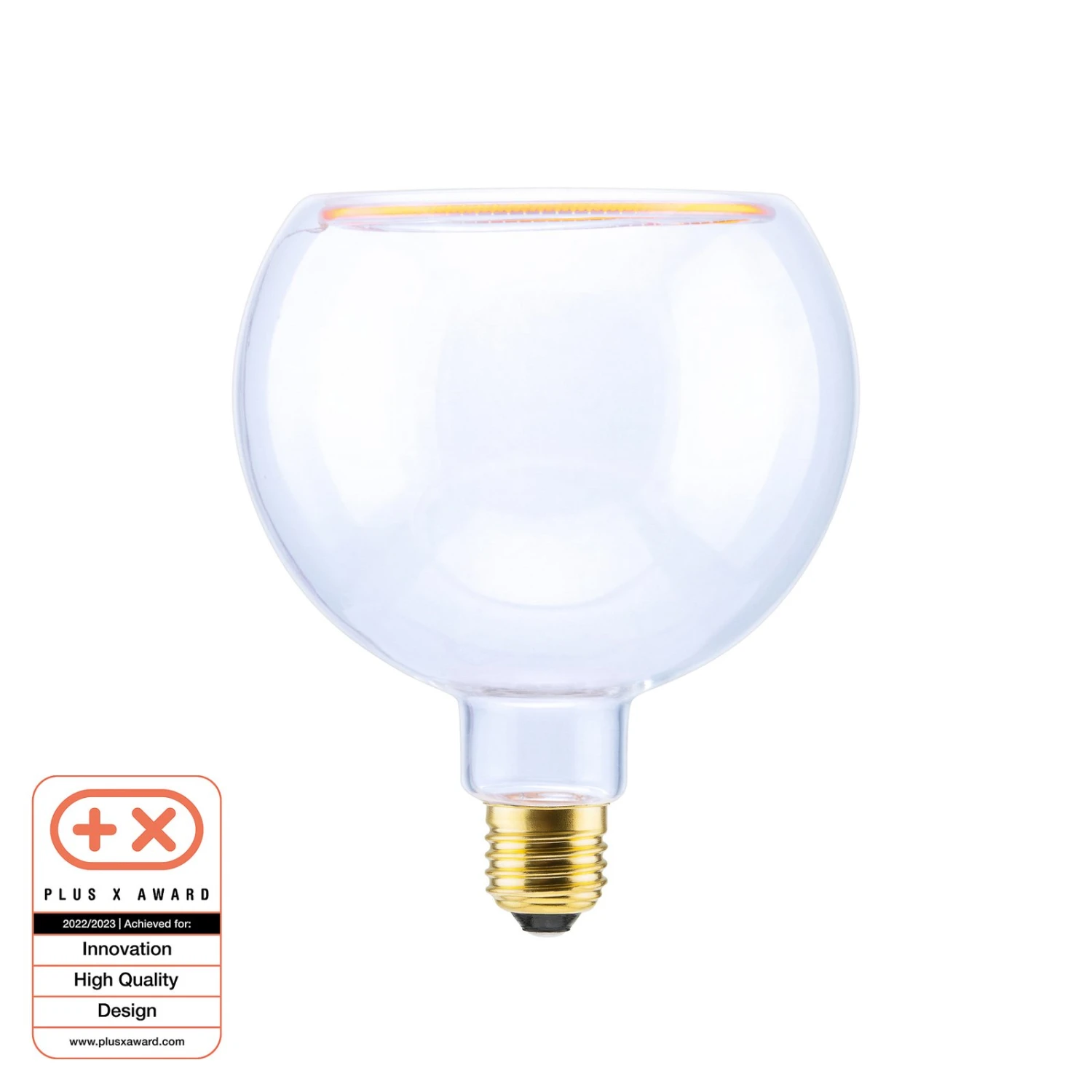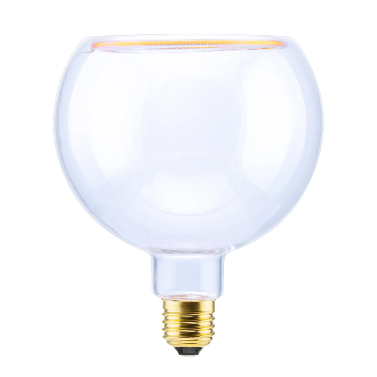 Die Öffnung an der Oberseite verleiht der LED-Floating-Globelampe im ein- und ausgeschalteten Zustand eine dekorative Optik. Besonders gut eignet sie sich für den Einsatz in offen gestalteten Leuchten ohne Schirm, beispielsweise Hänge- oder Tischleuchten. Die Helligkeit des warmen Lichts kann mit einem passenden Dimmsystem reguliert werden.