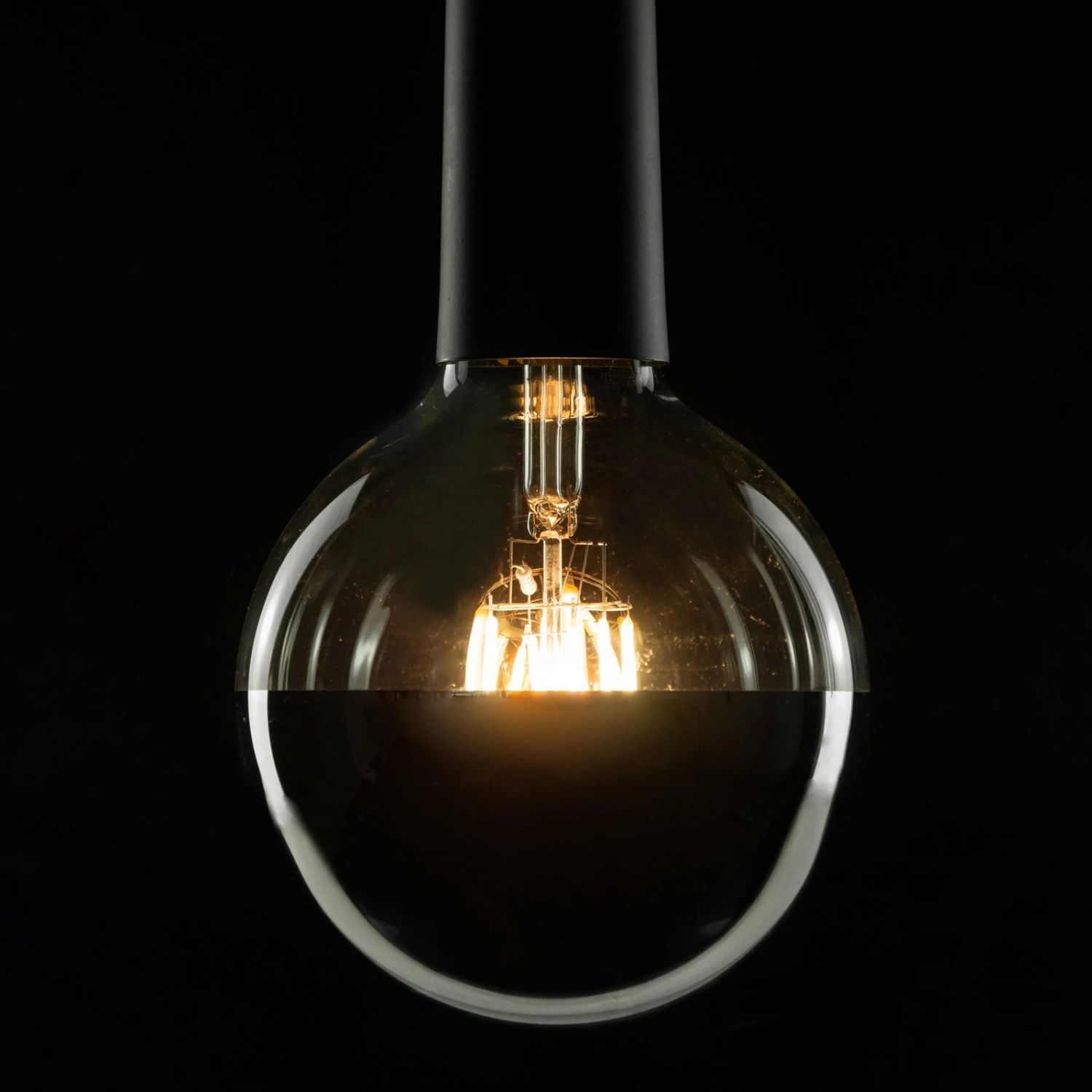 Diese Globelampe mit silbern verspiegeltem Kopf bietet sich für den Einsatz in Tisch- oder Hängeleuchten nur mit einer Fassung oder auch für Wandleuchten an. Der verspietelte Kopf sorgt dafür, dass man bei direkter Sicht auf die Lampe nicht geblendet wird.