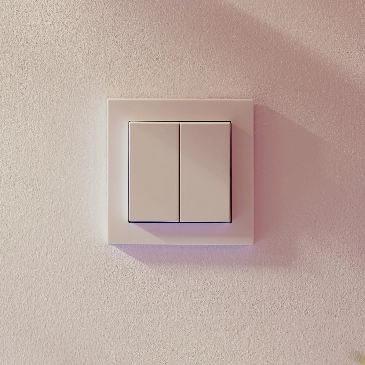 – vier individuell konfigurierbare Tasten (linke Tasten können mit Lichtszenen belegt werden; rechte Tasten dienen zum Ein- und Ausschalten durch kurzes Drücken sowie zum Dimmen durch Halten der Taste)