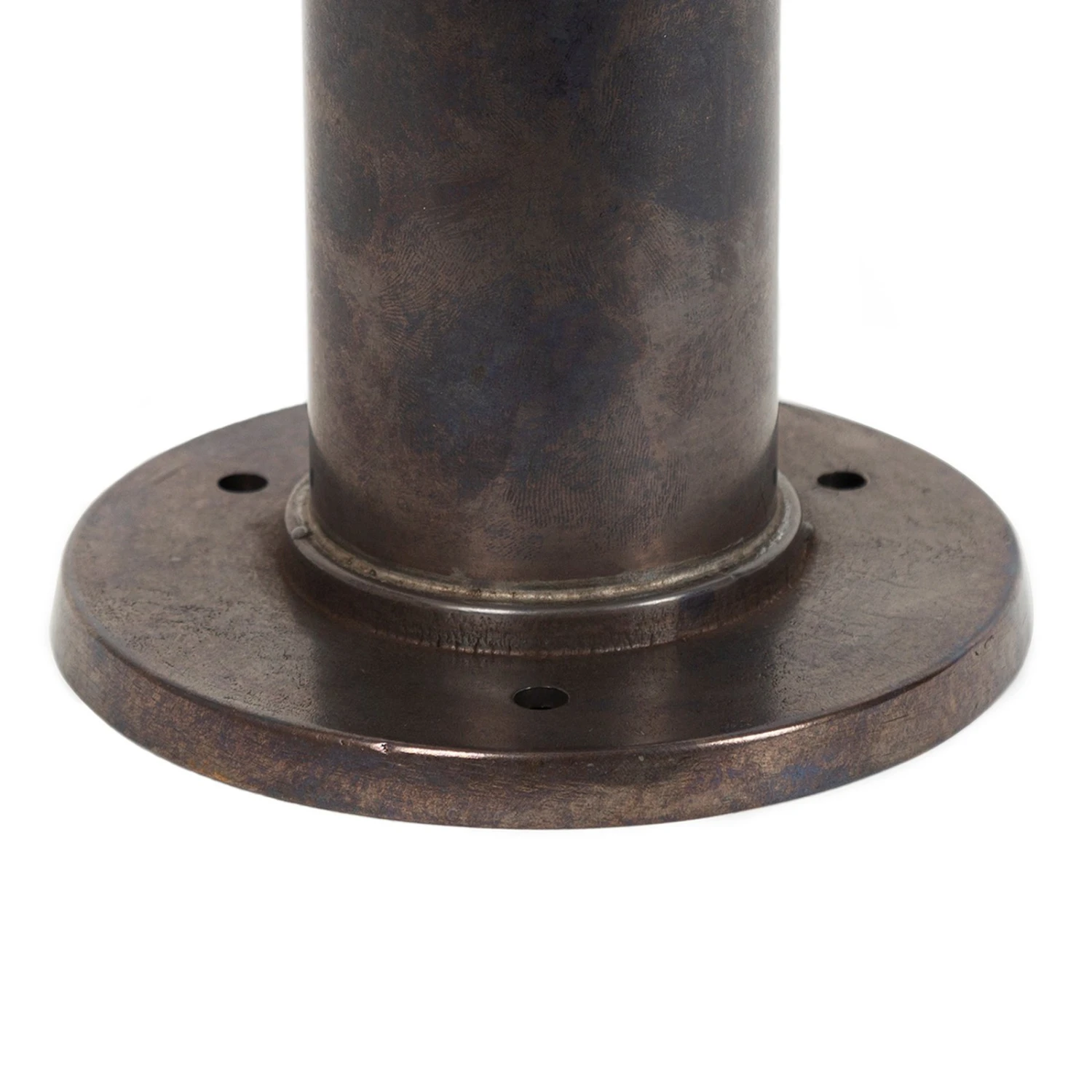 Die Sockelleuchte Resident 3 ist aus hochwertigem Messing gefertigt, das in einem rustikalen Bronzefinish daherkommt. Sie eignet sich beispielsweise perfekt für die Anbringung am Wegesrand im Garten oder auf der Terrasse. Das Gestell der Sockellampe Resident 3 ist zylindrisch geformt und wird von einem Milchglasschirm ergänzt. Dieser wird von dünnen Messingstreben umrahmt. Resident 3 lässt sich sowohl mit Glühlampen als auch mit energiesparenden und langlebigen LED-Lampen bestücken.