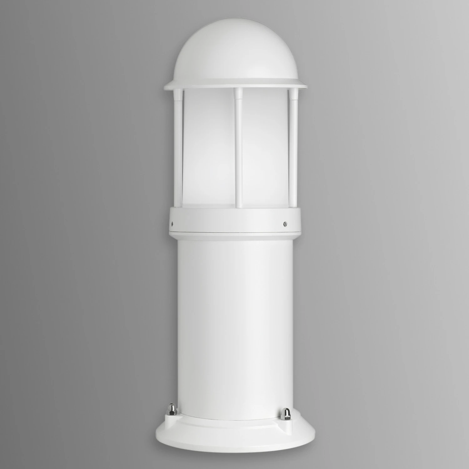 Die abgerundet geformte Sockelleuchte Marco aus Aluminiumdruckguss verleiht dem Außenbereich eine leicht maritime Note und sorgt – auf Mauern oder Sockeln montiert – für angenehme Helligkeit und gleichzeitig auch für Sicherheit auf dem Grundstück. Der weiße Diffusor aus Polycarbonat lässt das Licht ringsum gleichmäßig scheinen, ohne dass man geblendet wird. Die mit Schutzart IP44 ausgerüstete Sockelleuchte ist für den Einsatz von LED-Leuchtmitteln und Energiesparlampen geeignet.