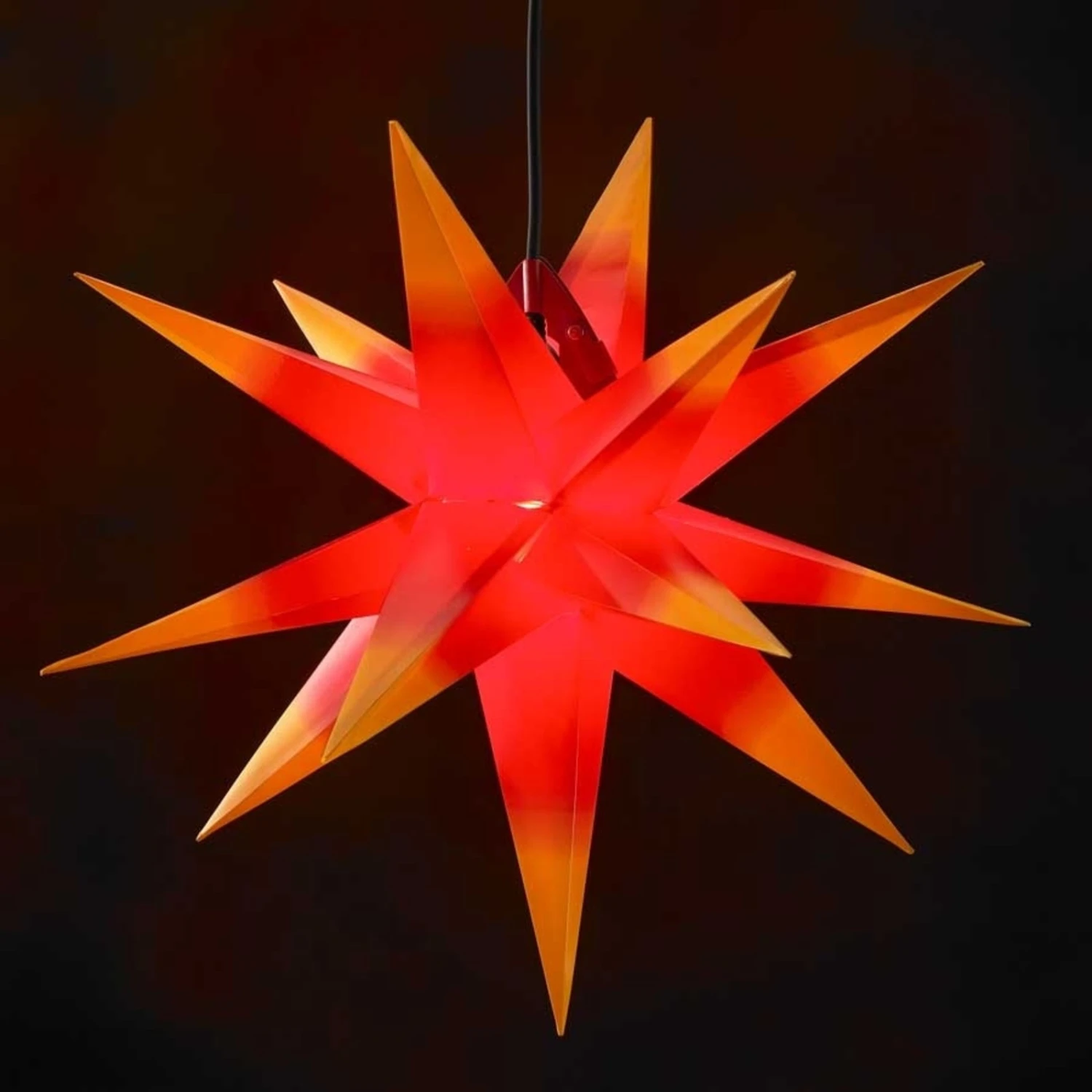 Dieser vielzackige Stern ist aus wetterfestem Kunststoff gearbeitet und mit der Schutzart IP44 auch für den Einsatz im Außenbereich gerüstet, denn auch stärkere Witterungseinflüsse wie allseitiges Spritzwasser können seiner Schönheit nichts anhaben. Der Stern zieht nicht nur aufgrund seiner Größe mit einem Durchmesser von ca. 50 Zentimetern die Menschen in seinen Bann, sondern auch durch seine Leuchtkraft. Seine schlichte Schönheit verbreitet helles, weithin sichtbares Licht in der Dunkelheit der Wintermonate und stimmt auf verheißungsvolle Weise auf die Weihnachtszeit ein.