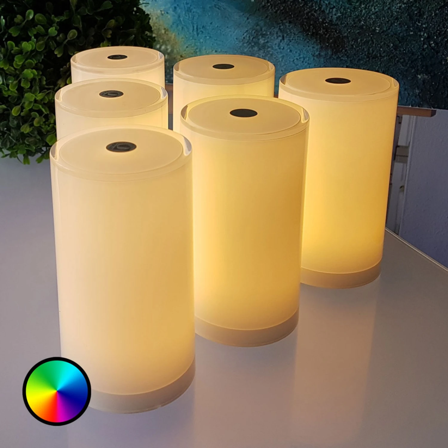 Magisch leuchtende Zylinder – 6er-Pack der LED-Deko-Tischleuchte Tub für innen und außen