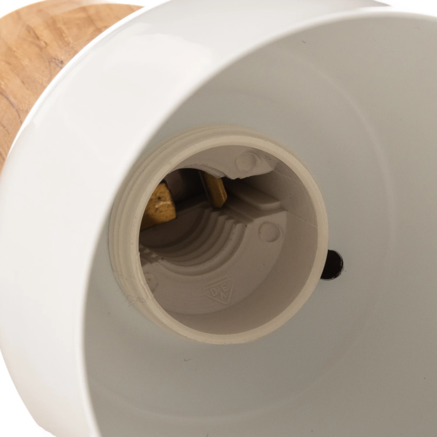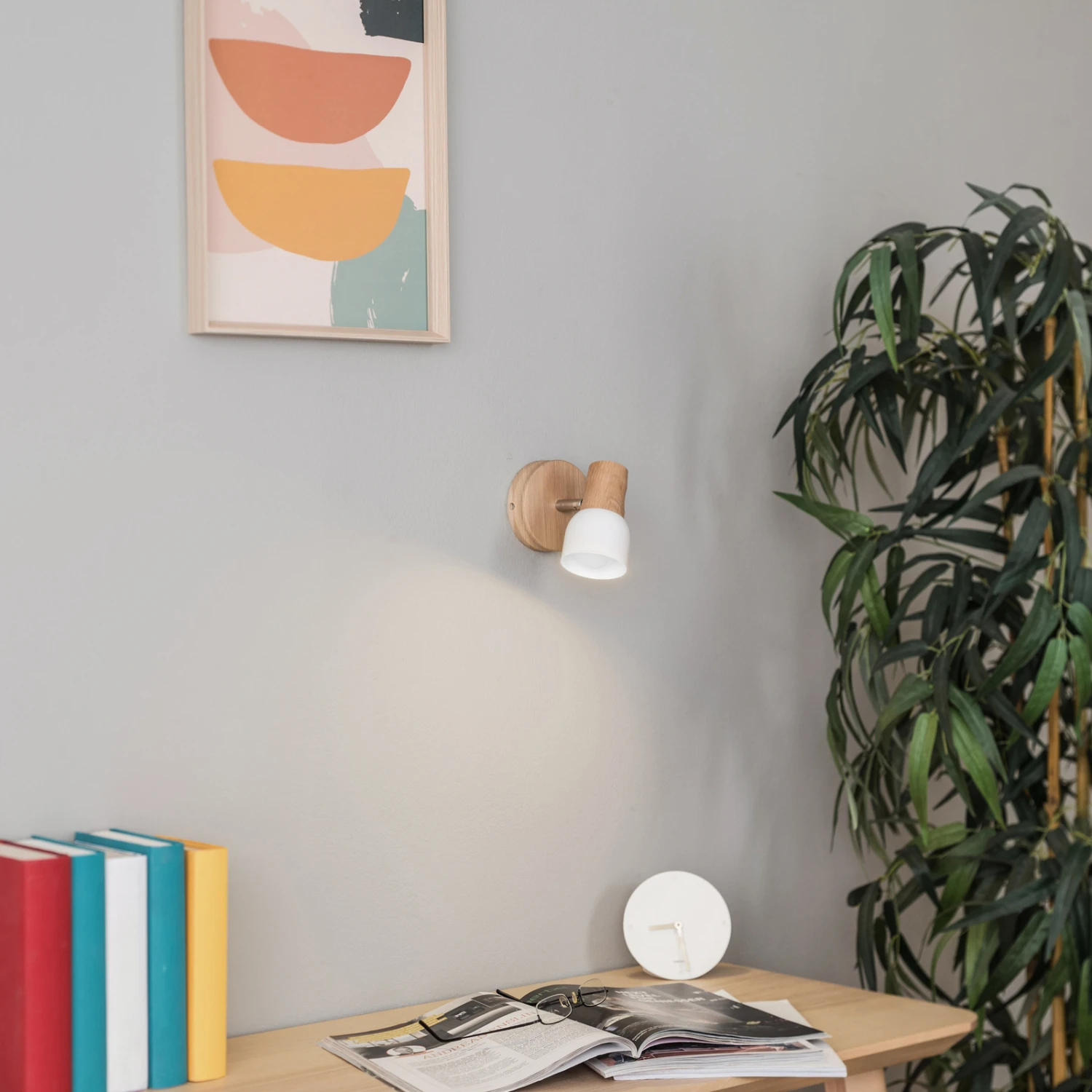 Dieser Wandspot ist aus echtem Eichenholz und weiß lackiertem Metall gefertigt und verbreitet daher ein wunderbar natürliches Flair im Wohnraum. Der Leuchtenschirm, der zu gleichen Teilen aus Holz und Metall besteht, lässt sich beliebig ausrichten, so dass sich das Licht, das durch ein E14-Leuchtmittel im Schirminneren erzeugt wird (siehe Zubehör), zielgerichtet abstrahlen lässt. Svantje – ein toller Blickfang an der Wand!